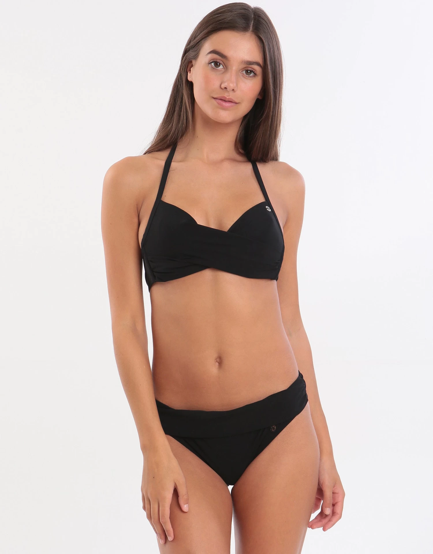 Style yourself in Banana Moon’s Black Eyro Twist Halter Bikini Top. With an elegant twisted front and back and neck tie fastening, this bikini top has great adjustability for the optimum fit.