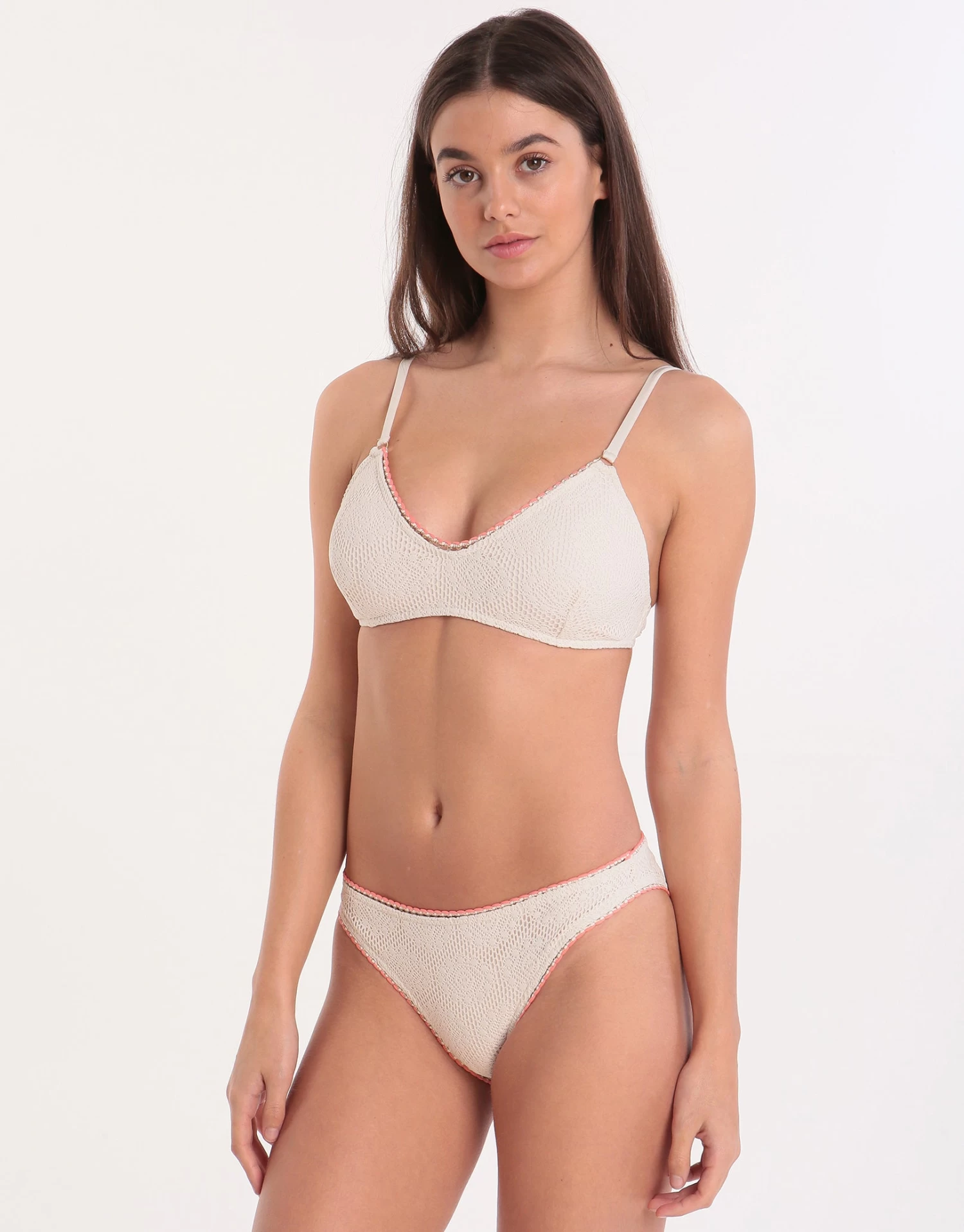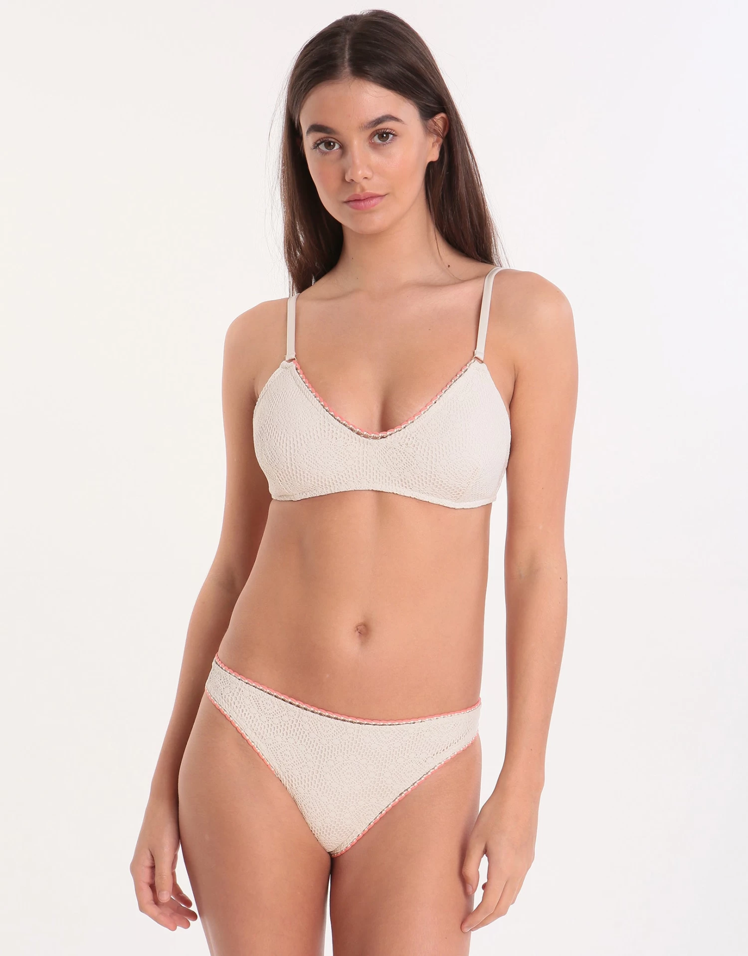 This flattering and stylish Banana Moon Couture Crochet Plago Bralette Bikini Top is a great chic feminine style to add to your holiday collection. With a scooped scalloped neckline, this is sure to make a statement by the pool.Â