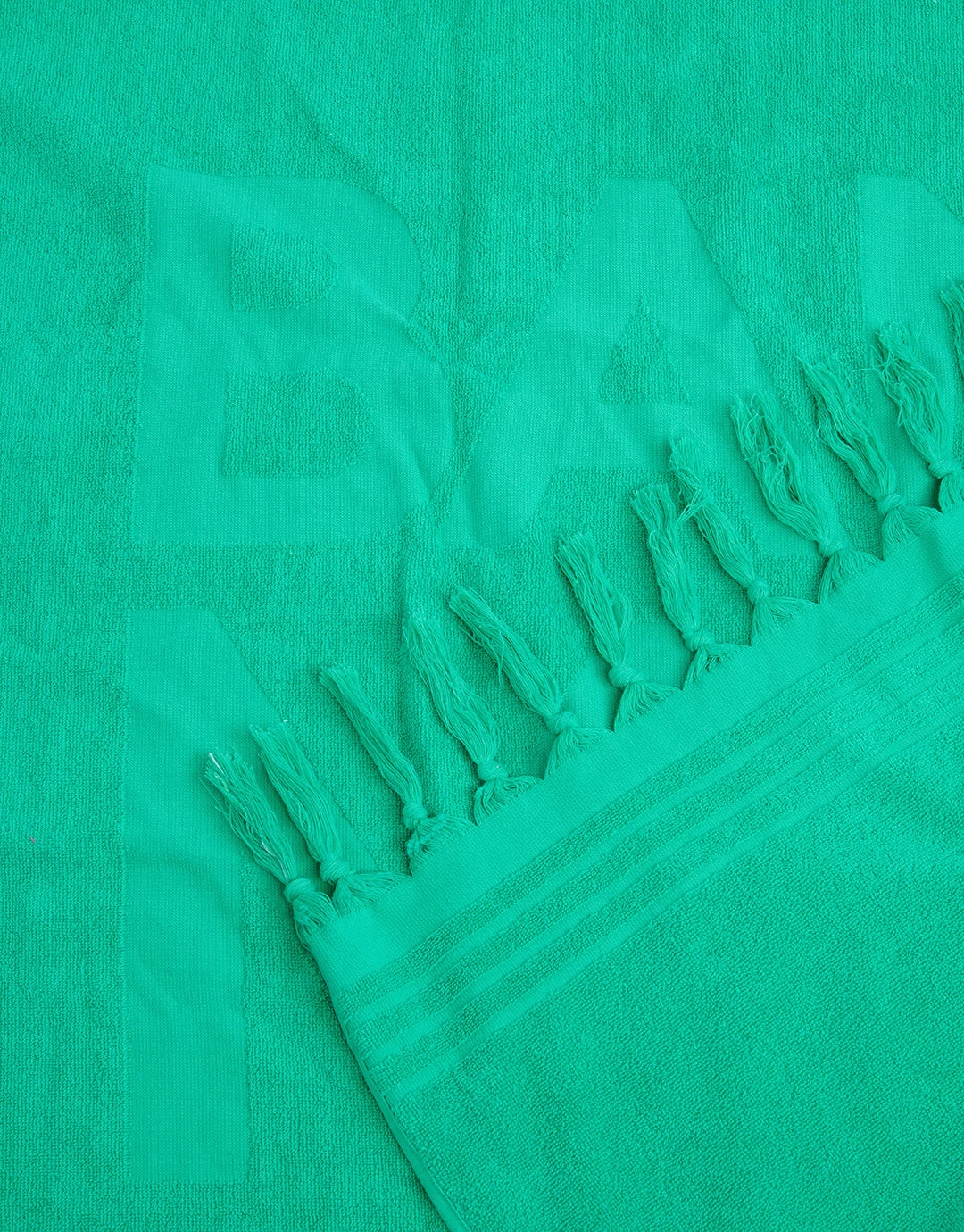 The Popsy Towel in Green from Banana Moon is a classic terry toweling towel in a Jacquard weave with Banana Moon woven into the design.