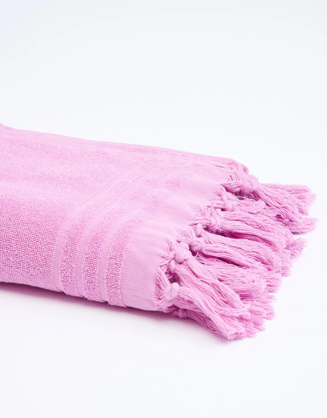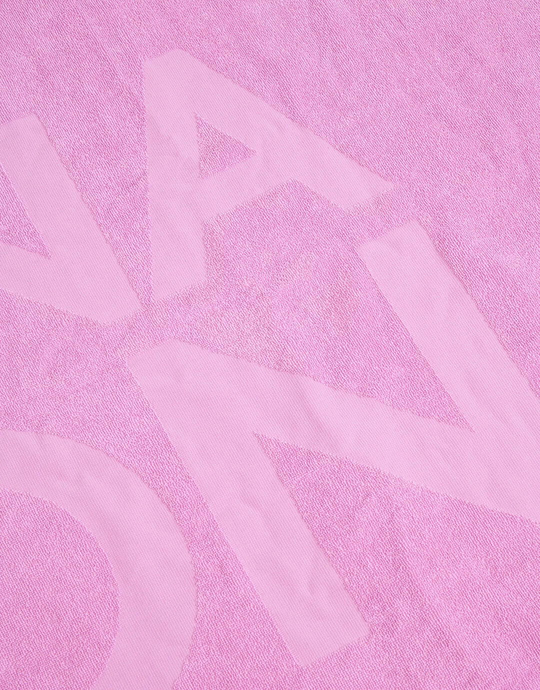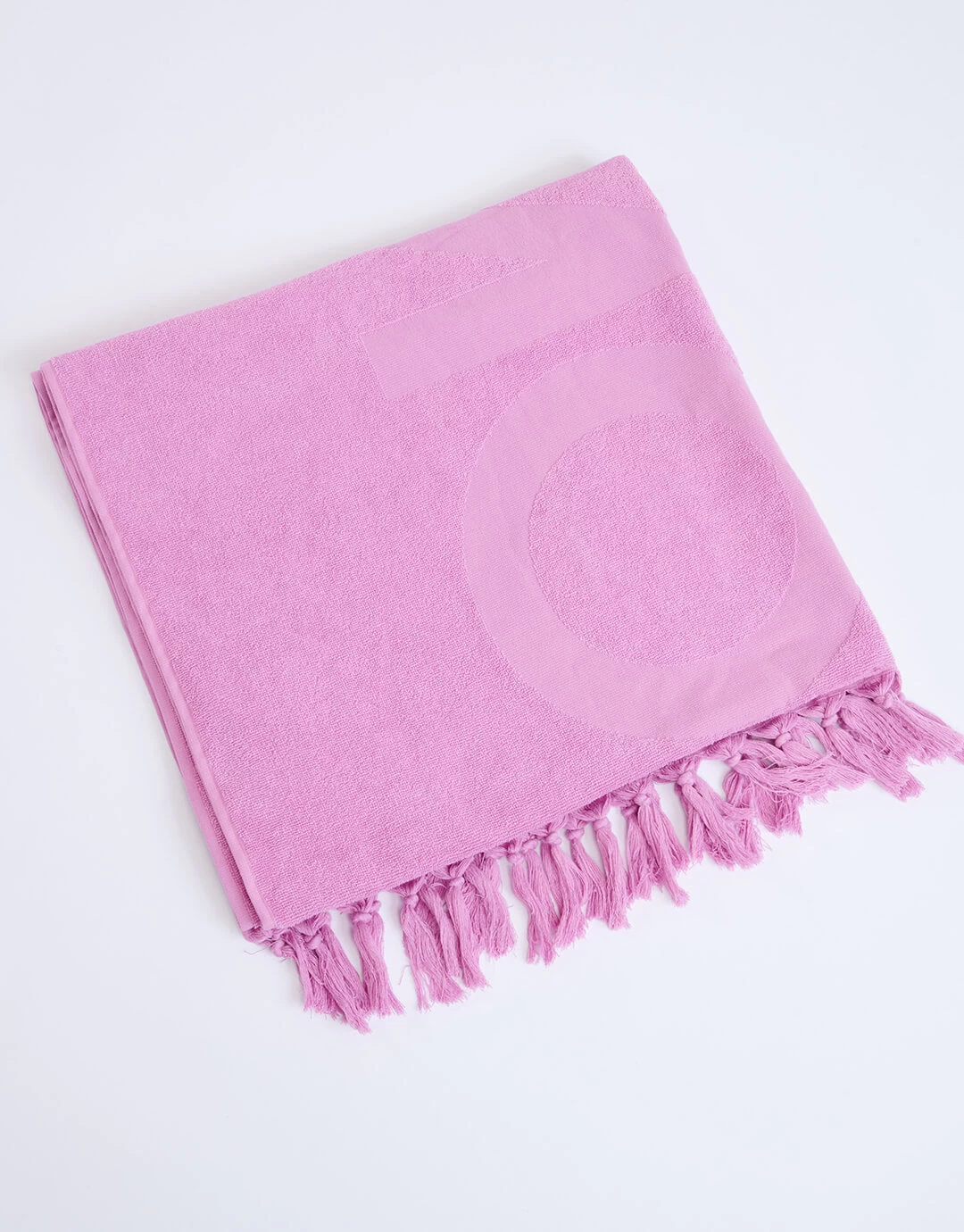 The Popsy Towel in Pink from Banana Moon is a classic terry toweling towel in a Jacquard weave with Banana Moon woven into the design.