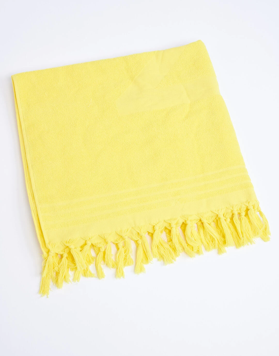 The Popsy Towel in Yellow from Banana Moon is a classic terry toweling towel in a Jacquard weave with Banana Moon woven into the design.