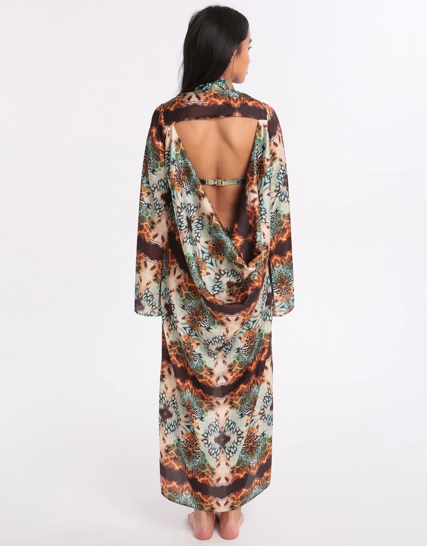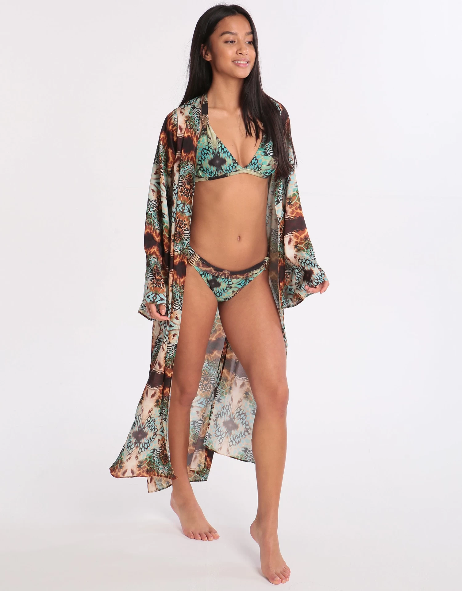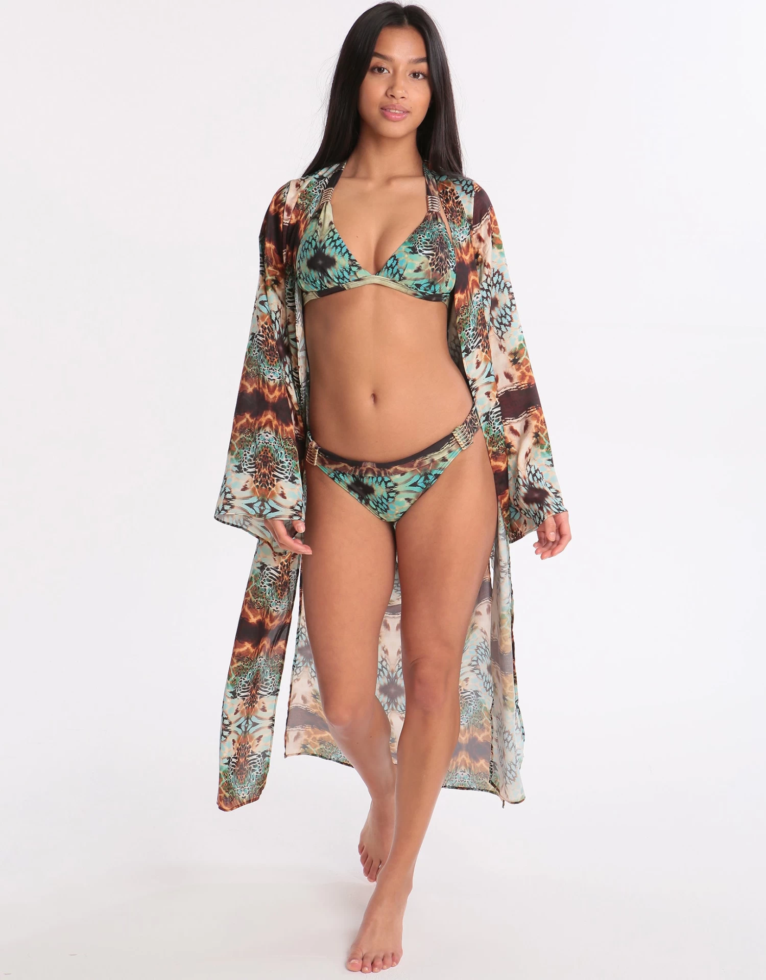 Cover up in style wearing West Seventy Nine’s Borneo Kaftan in a Green multi print.Â