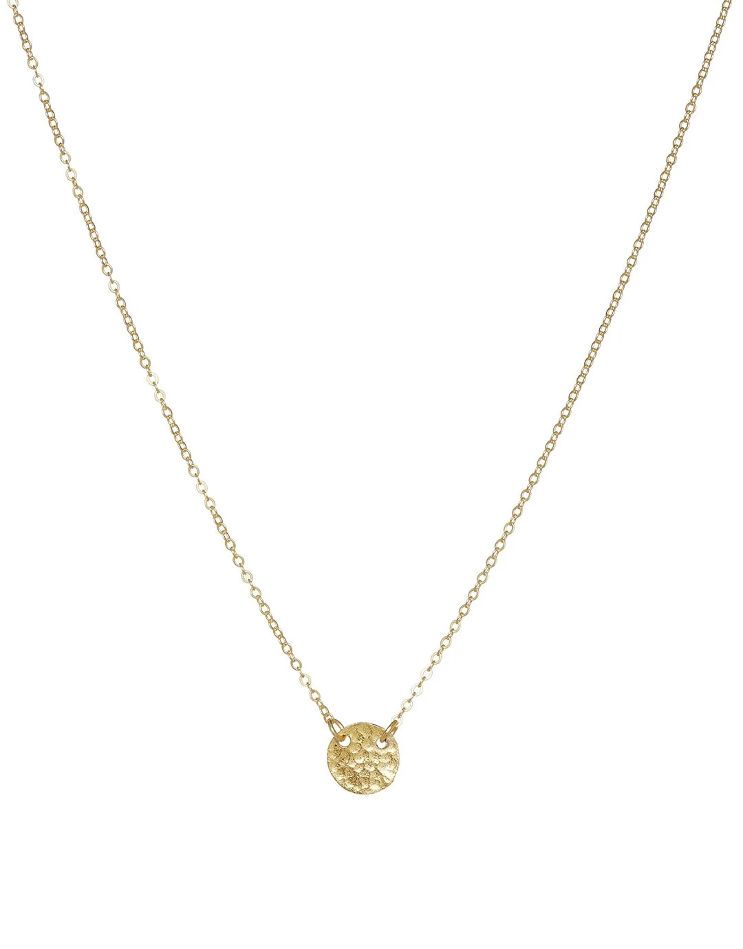 Choose dainty accessories to elevate your everyday look with the Ashiana Coin Necklace in a 22K gold plated design with a signature beaten disc charm.