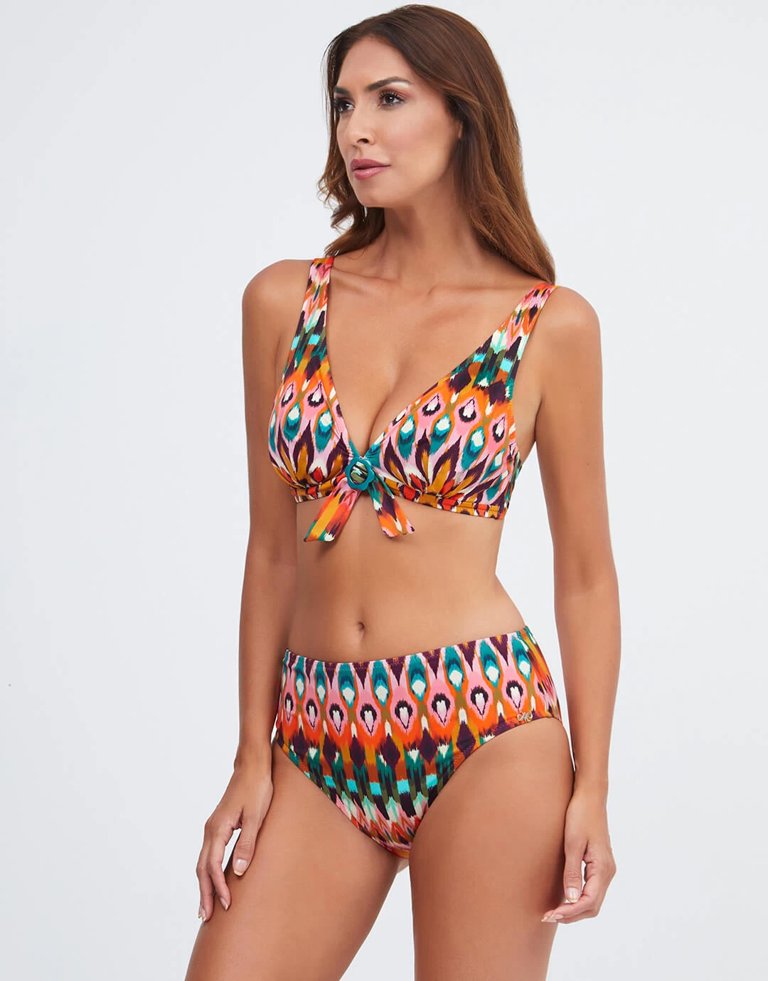 The Ipanema Maxi Control bikini pant from Nuria Ferrer is a lovely colourful Ikat print pant with full coverage.