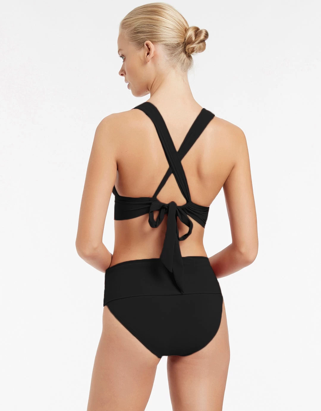 The Jetset Fold Down bikini pant from Jets is a classic cut full pant with an adjustable deep waistband which can be folded up or down, depending on the required coverage.