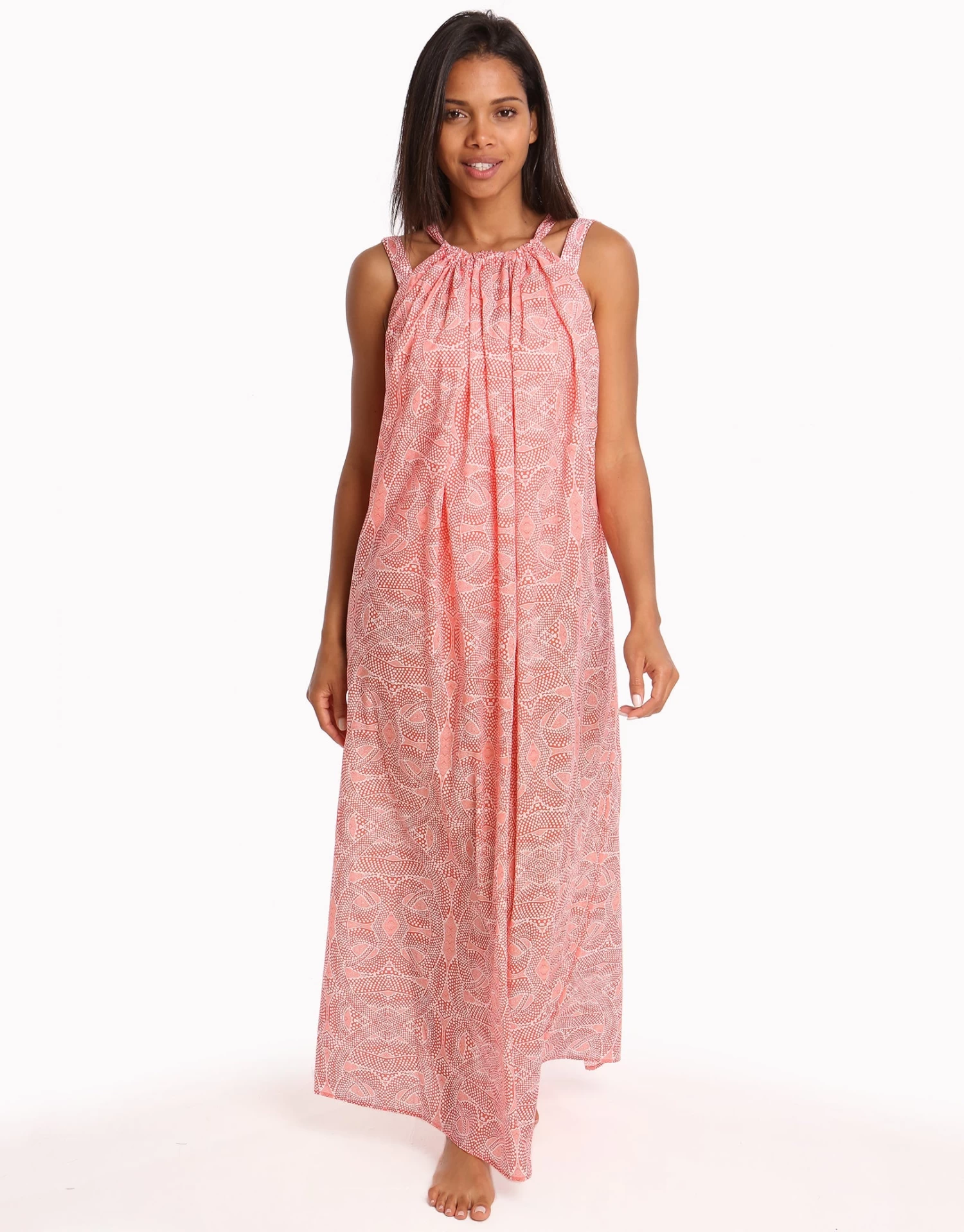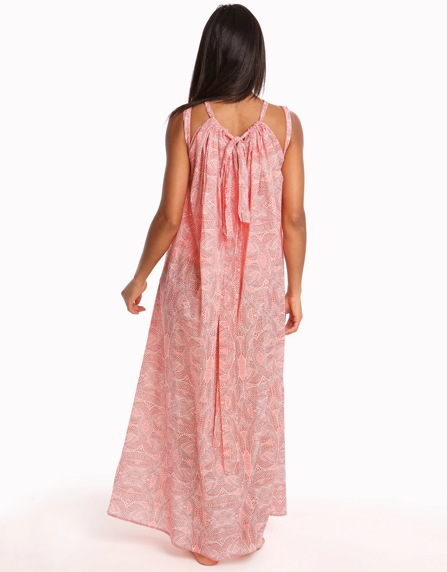 This Paolita Malika Cotton Maxi Beach Dress features a long tie that is threaded through the neckline through to the back where it can be tied in different ways for a customisable look, allowing you to wear it as a loosely fitted beach maxi by day, then as an elegant fitted maxi by night!