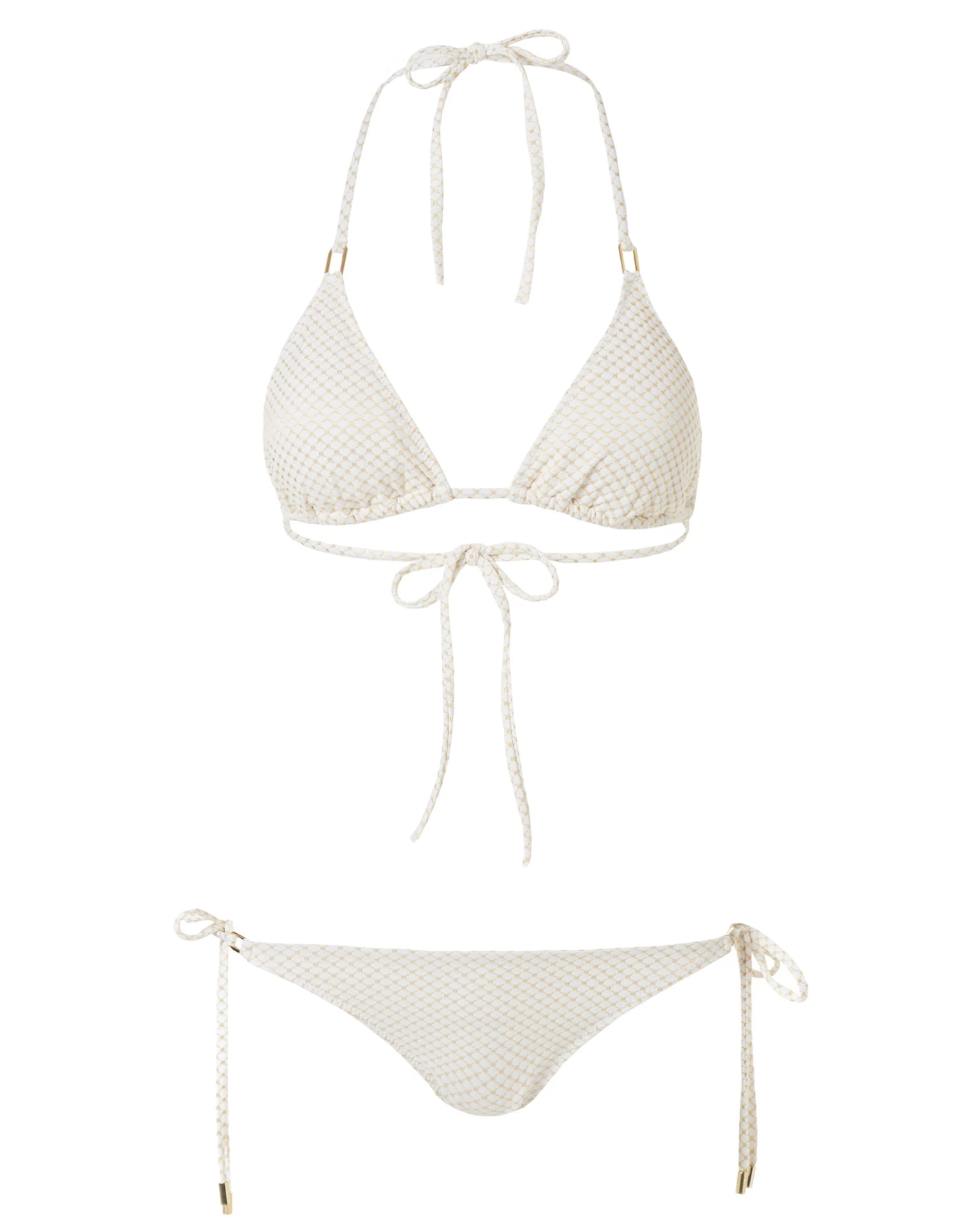 Add a classic style to your holiday swimwear collection wearing Melissa Odabash’s Cancun Classic Triangle Bikini Top in a Hexagon Print.