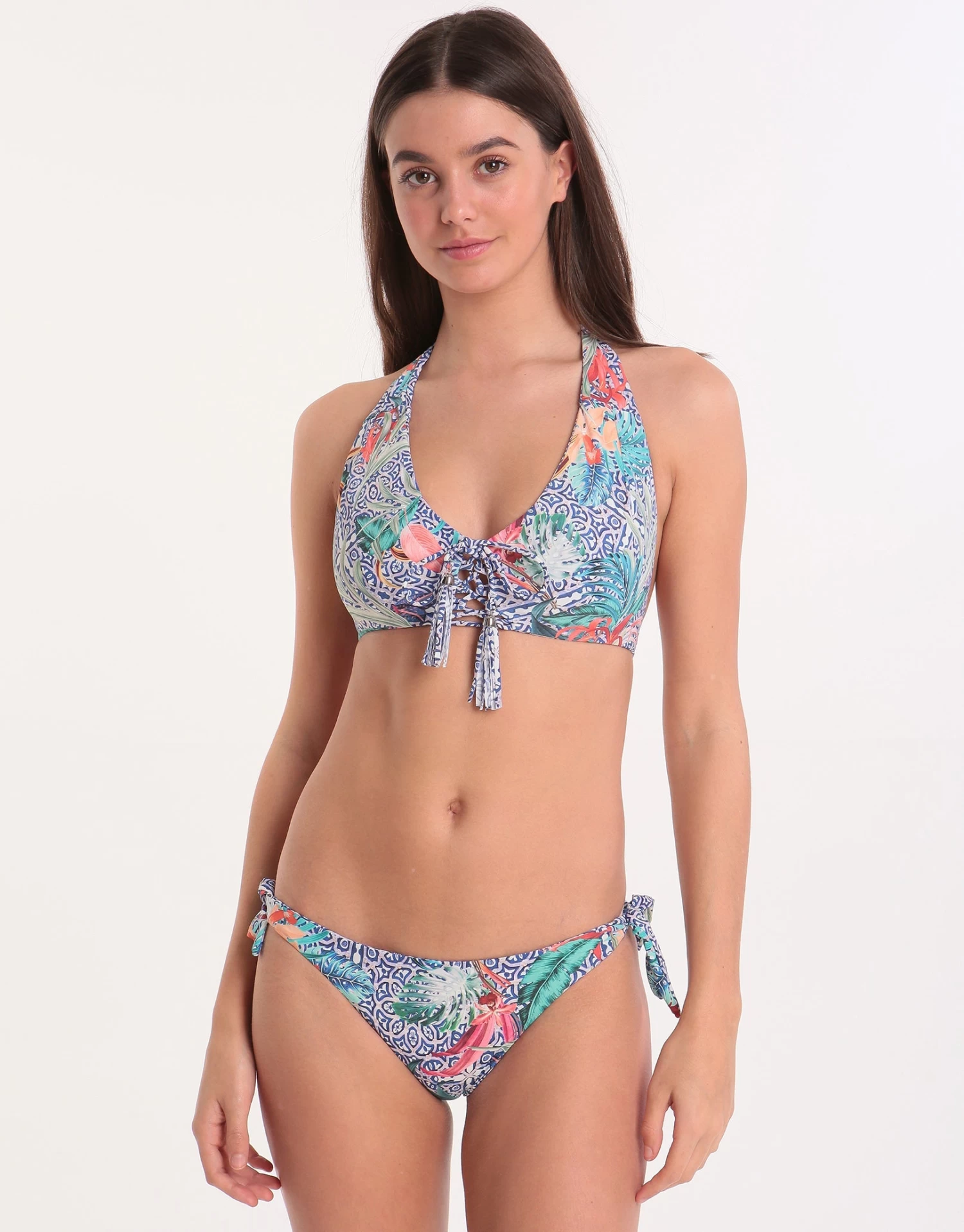 Ooze style and elegance wearing Moontide’s Morocco Reversible Lacing Bikini Top in Multi.