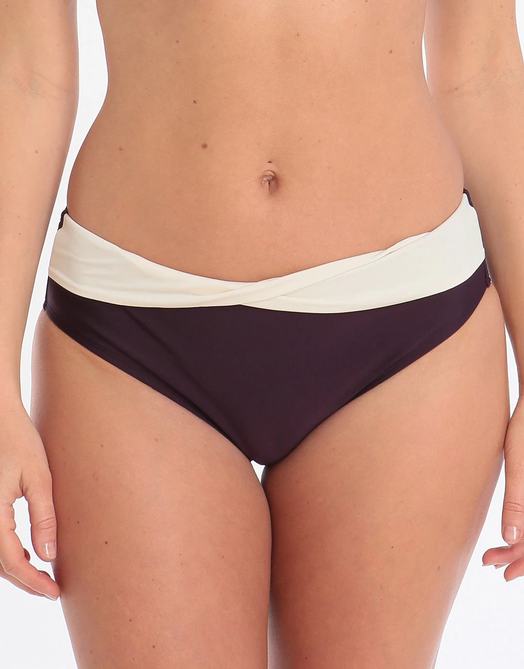 The lovely Portofino Classic Bikini Pant from Panache gives a flattering fit with good coverage and looks fabulous in Aubergine with a contrast cream waistband.