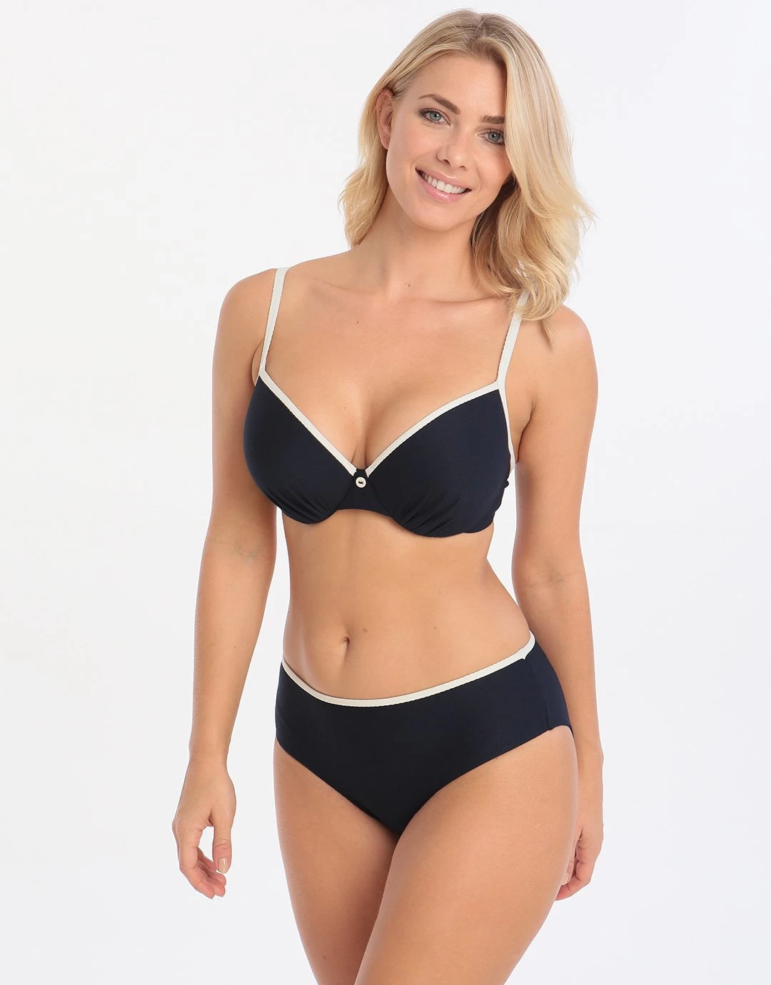 Sunbathe in style in Lepel’s Plain Sailing Padded Plunge Bikini Top giving cup sized support up to G cup.