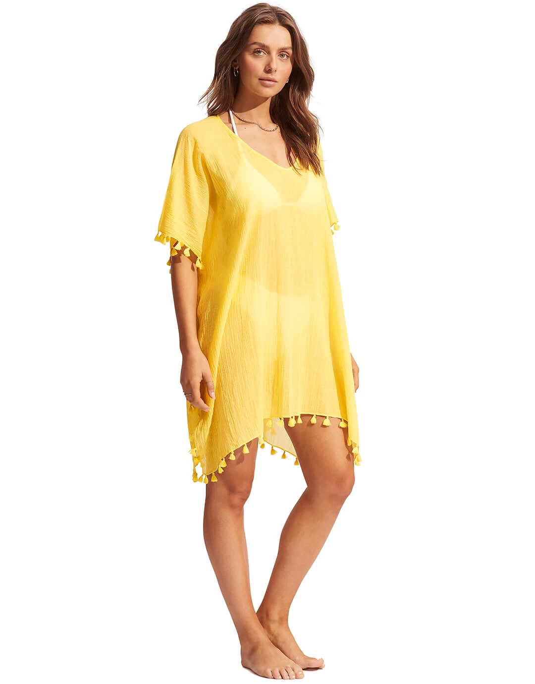 The Amnesia Kaftan in Citron from Seafolly is a great cover-up to throw over your Seafolly swimwear. Made from soft cotton gauze, with a V neck and tasselled hem.