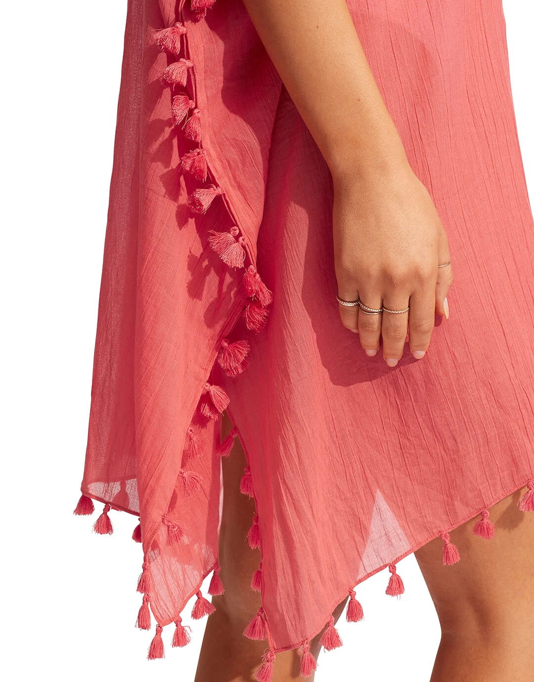The Amnesia Kaftan in Sun Kissed Coral from Seafolly is a great cover-up to throw over your Seafolly swimwear. Made from soft cotton gauze, with a V neck and tasselled hem.