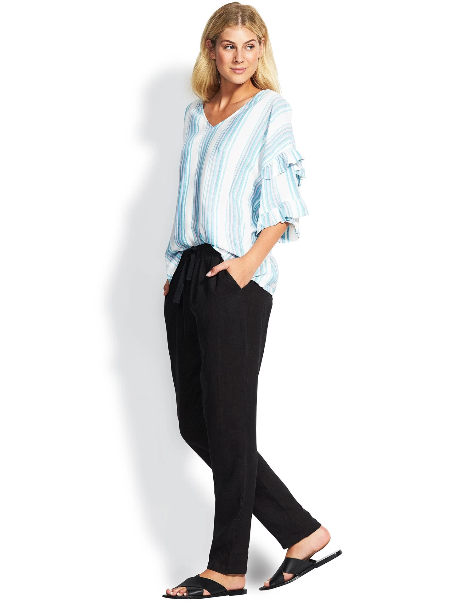 Be sure to make these Seafolly Linen Drawcord Trousers in black the newest addition to your holiday wardrobe.
