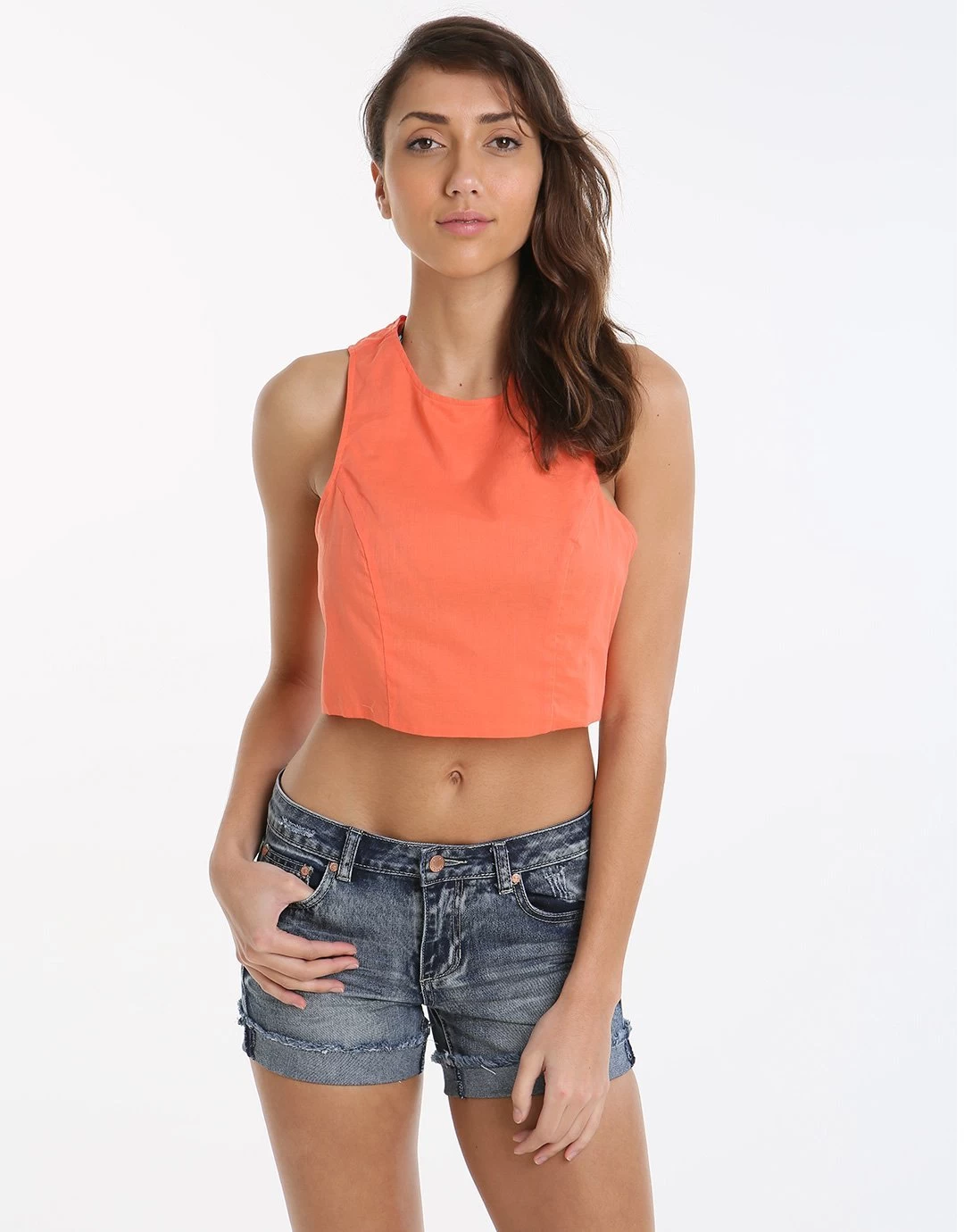 Up your beach-style game in the Seafolly Nectarine Rails Top with its summery orange hue and cross over back detail. This 100% cotton summer top is perfect for throwing on over your favourite bikini top and summer shorts, keeping you feeling cool and comfortable whilst keeping your summer style bang on trend.