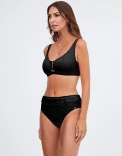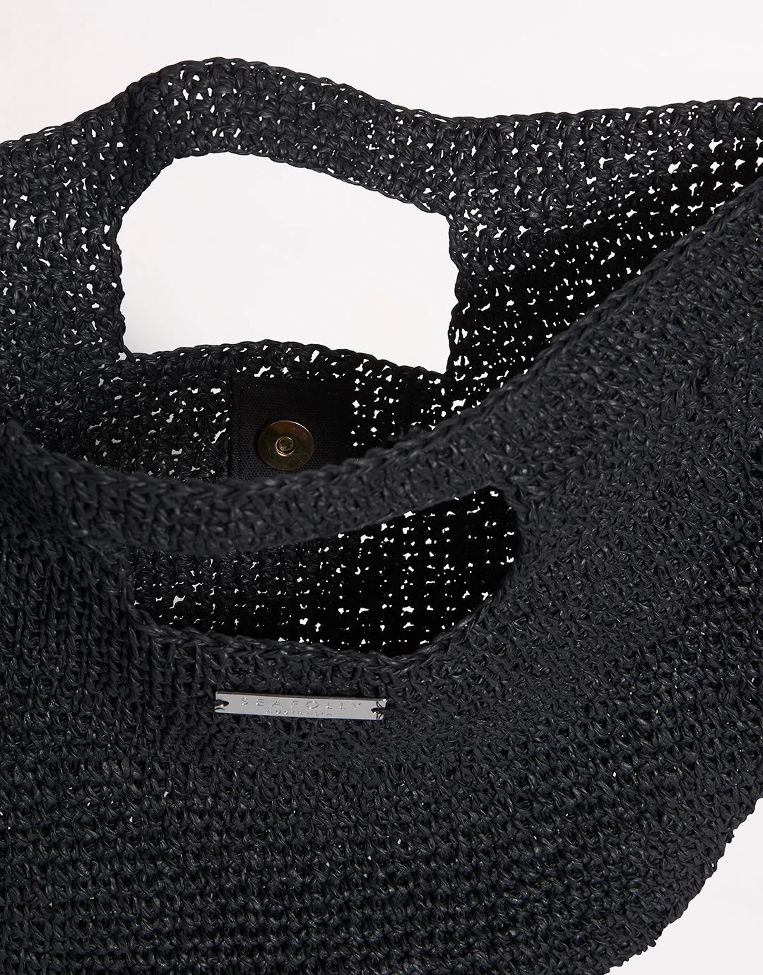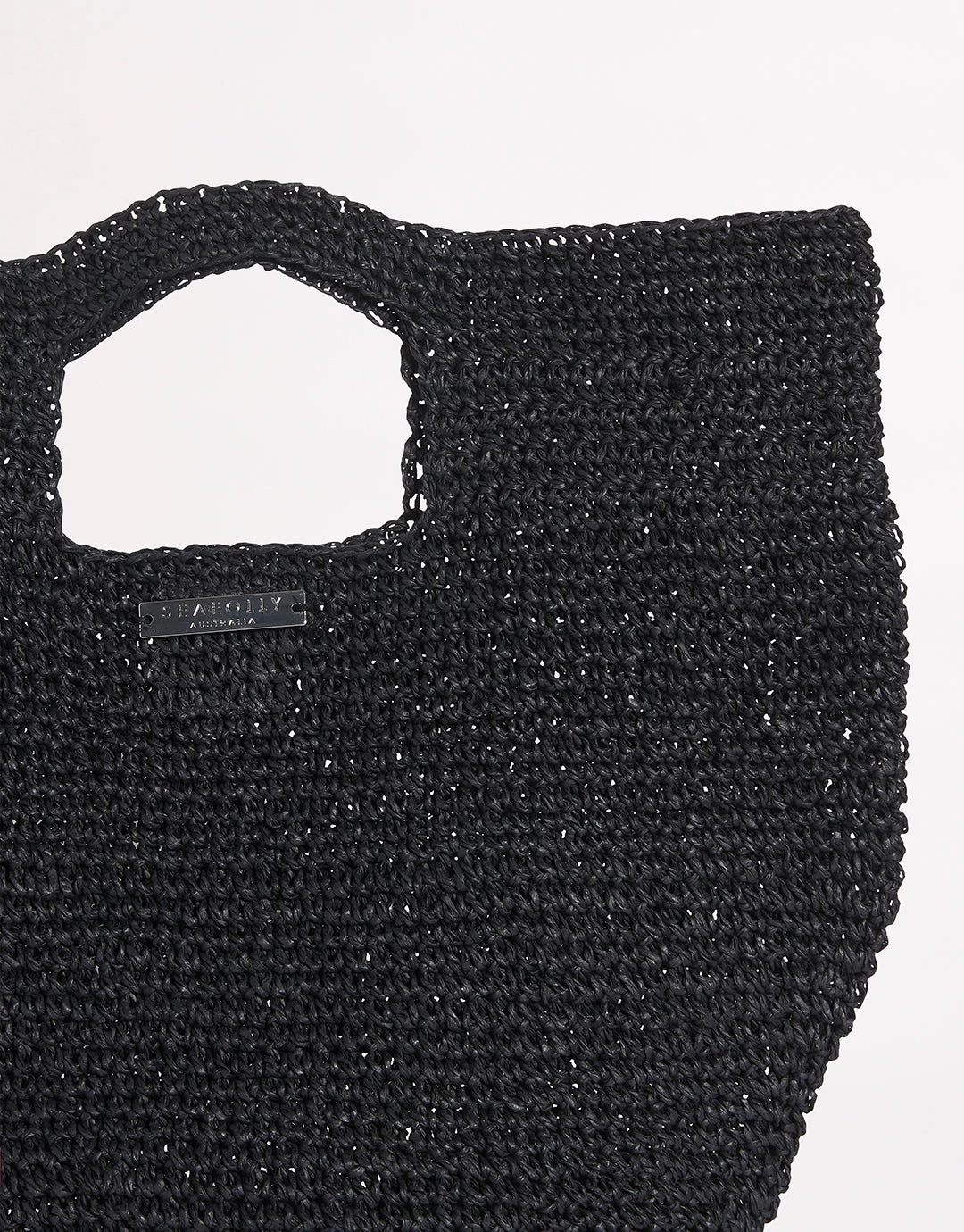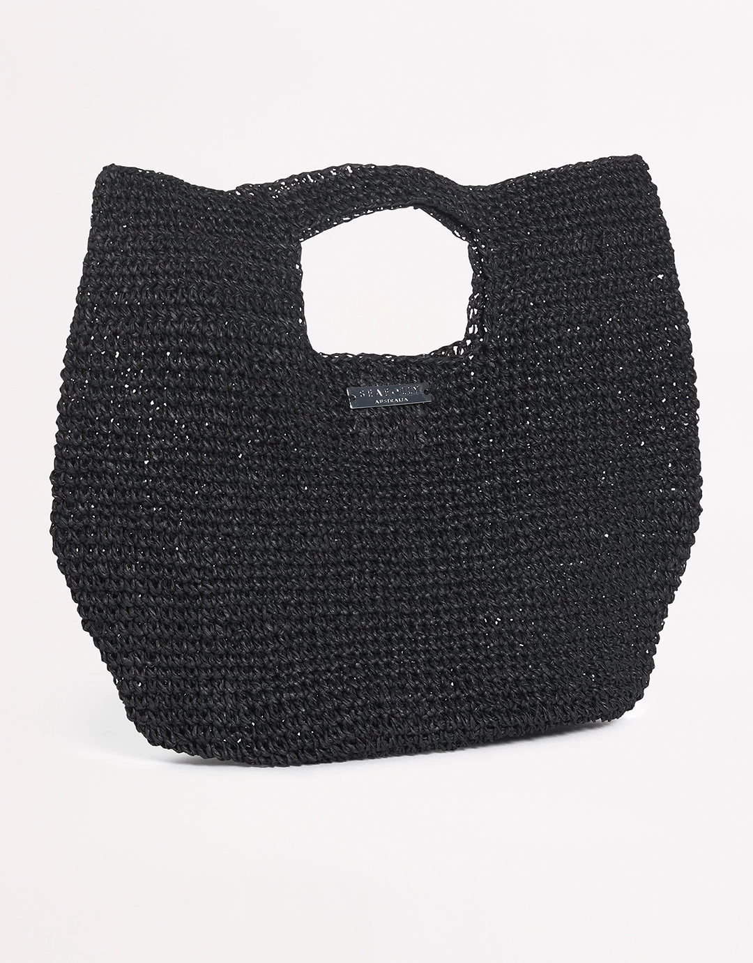 The lovely little Sierra Mini bag from Seafolly is a cute little black tote bag with Seafolly branding and a magnetic closure.