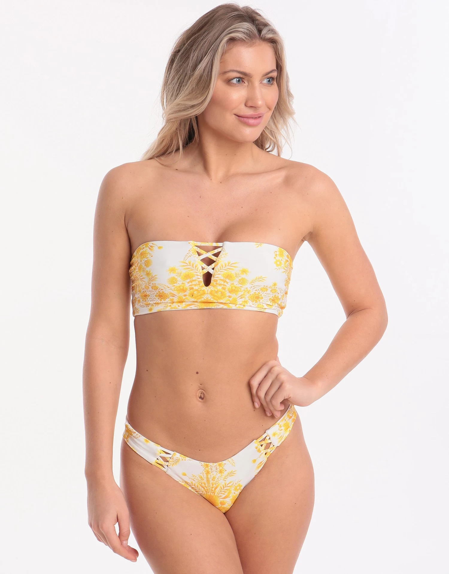 Soak up the sun in this Seafolly Buttercup Sunflower Tube Bikini Top with crisscross detailing on the front for a feminine touch. Why not try and shake up your look and try the reversible side.