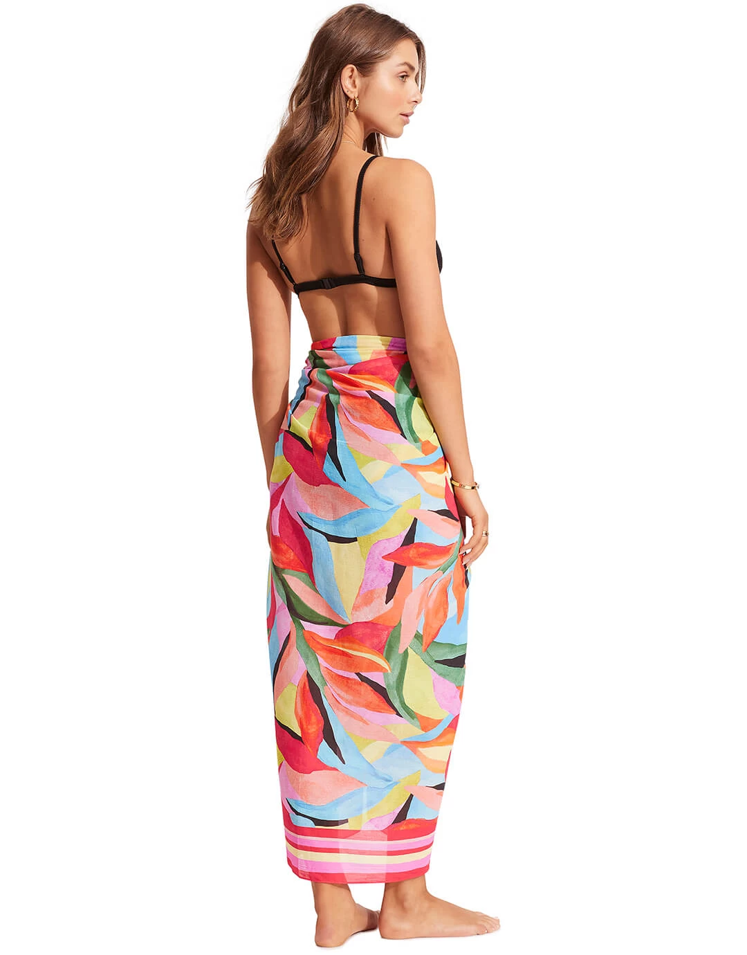 The Tropfest Pareo from Seafolly is made from soft touch cotton in the beautiful Tropfest print with a striped border.
