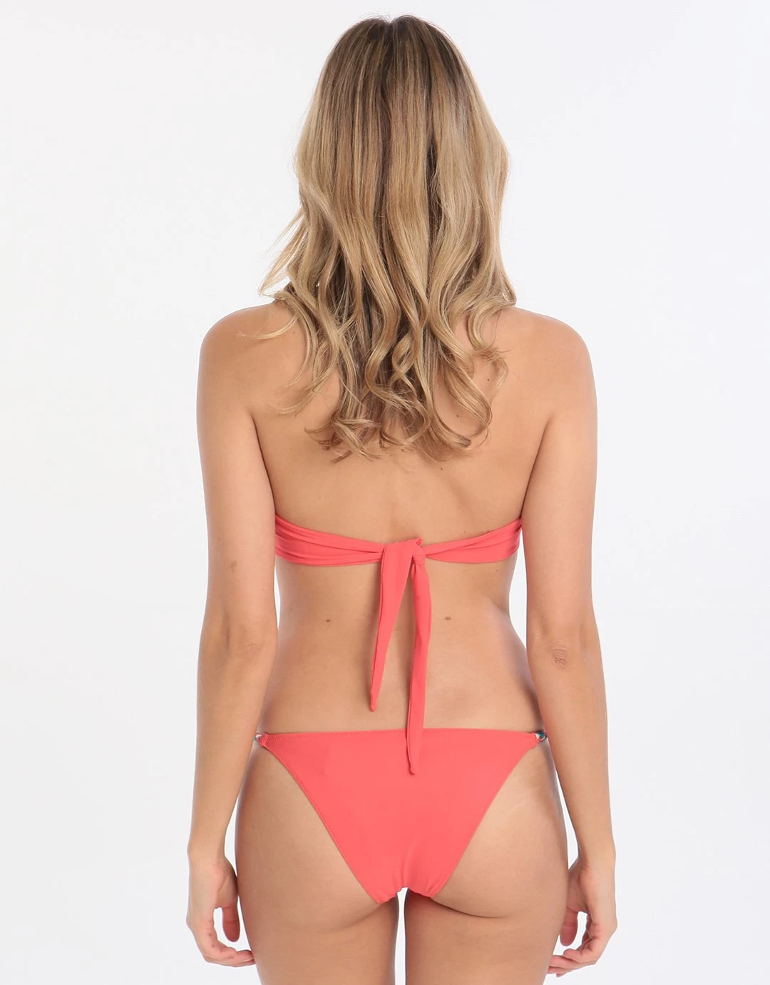 The Shoreline Peppa Hipster Pant from Banana Moon looks beautiful in coral with a contrasting plaited waistband that sits low on the hips and gives minimal coverage.