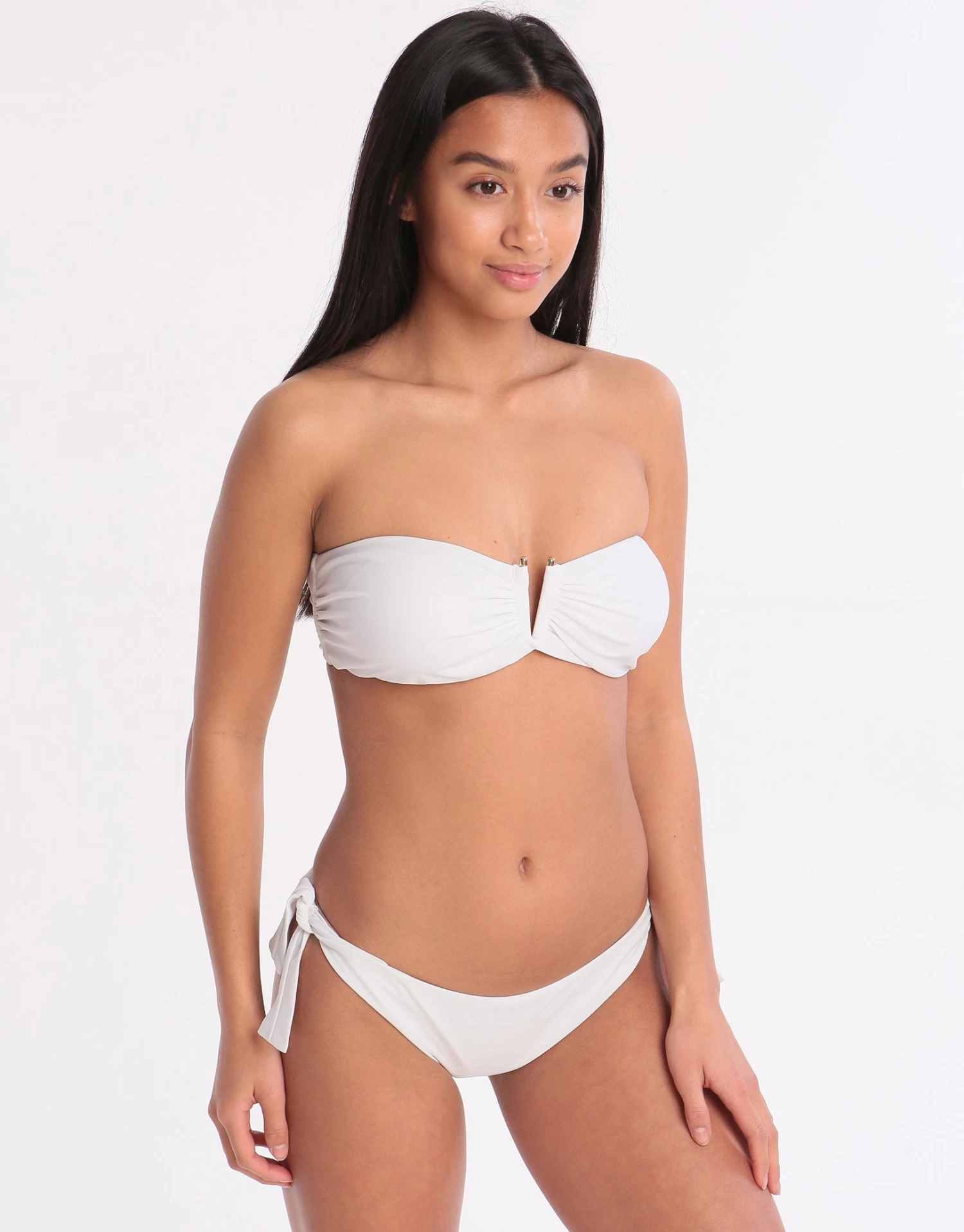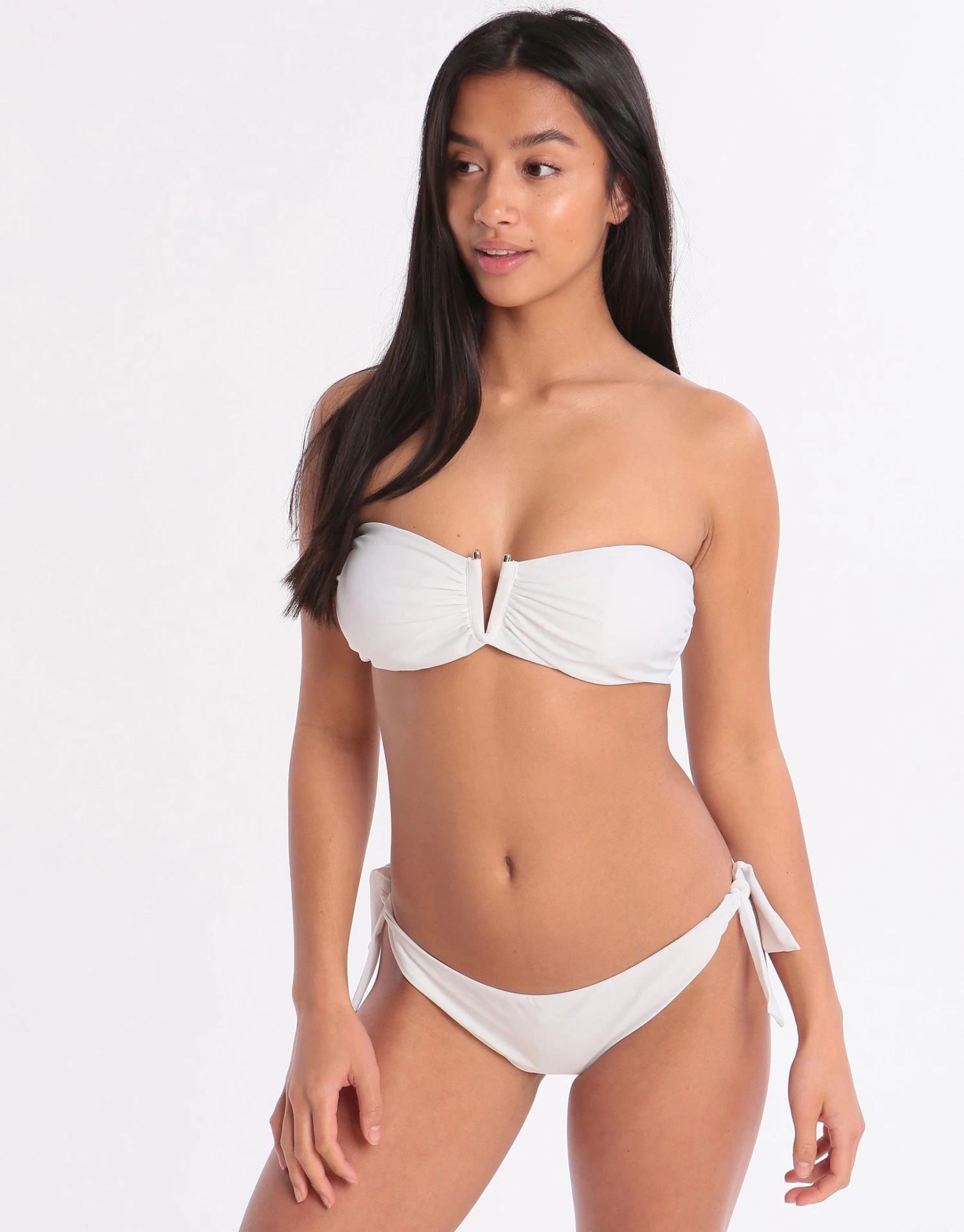 Add a touch of elegance to your holiday wardrobe wearing West Seventy Nine’s Tie Side Cheeky Bikini Bottom in White.