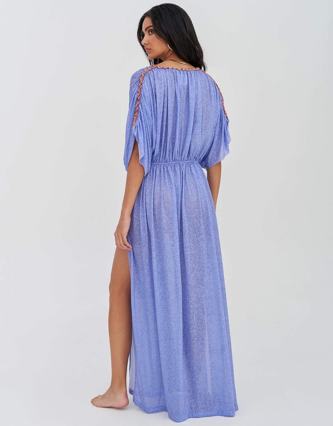 The Tulum Braided Sleeve dress from Pitusa is a beautiful Periwinkle blue plunging V neck dress with gathers at the sleeves, the back and the waist and Pitusa’s classic Inca trim detailing at the neckline and the waist. Available in Standard or Petite lengths. Choose Standard if you’re over 5ft 4in and Petite if you’re under.