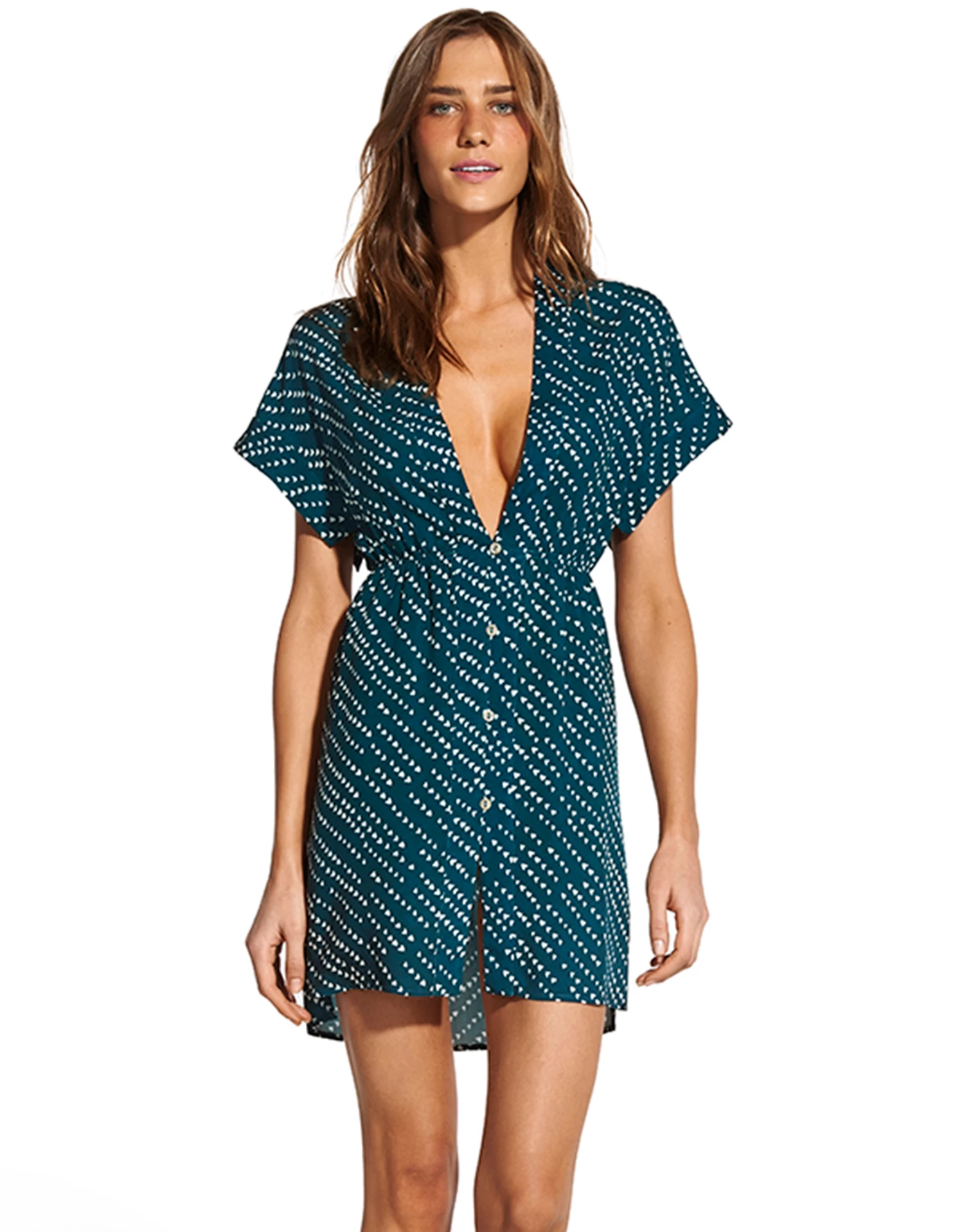 Be sure to make a poolside statement as you relax wearing this ViX Ventana Ocean Fuji Kaftan in Teal.