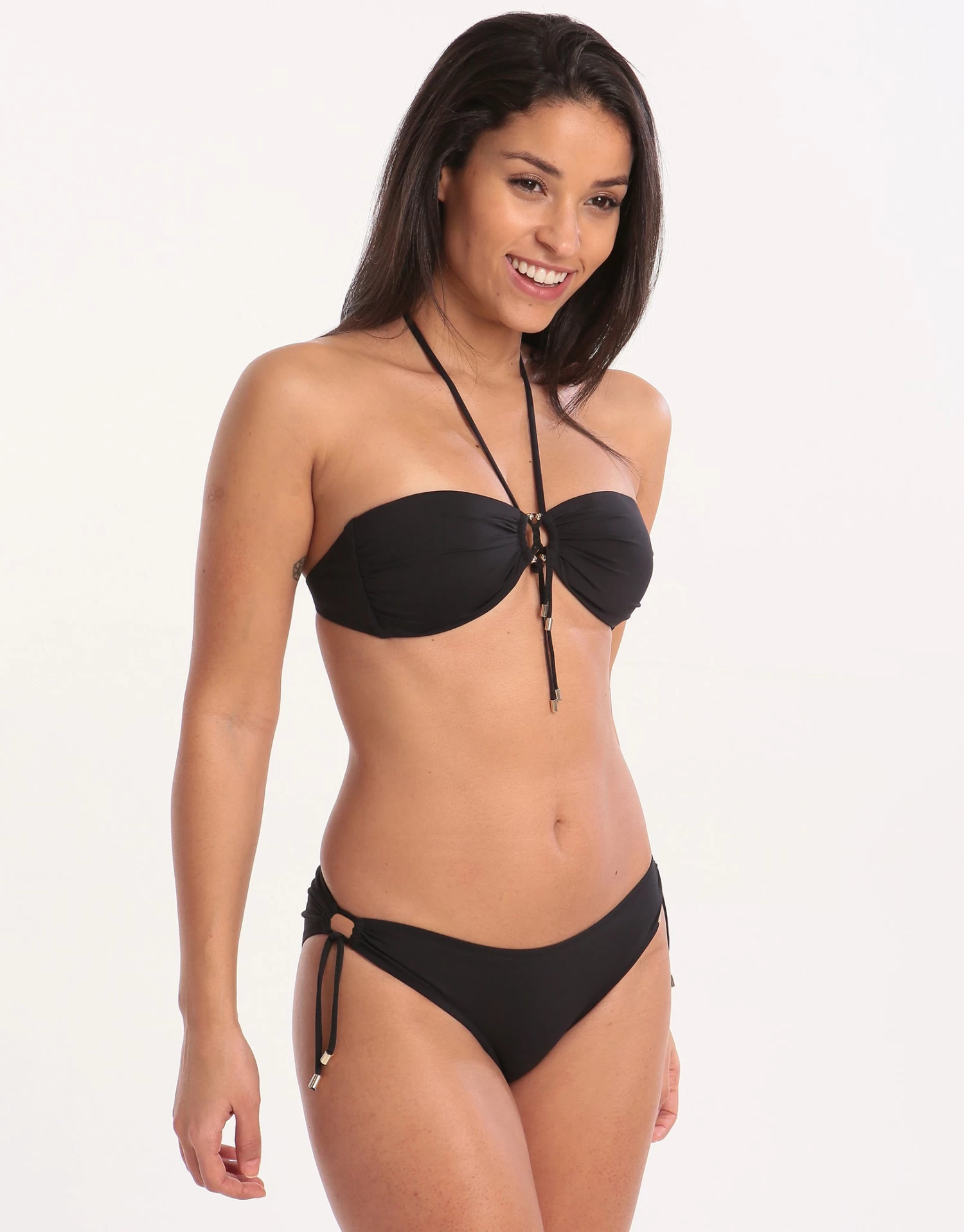 For the ultimate relaxed beach style be sure to wear Watercult’s Summer Solids B Cup Bandeau Bikini Top in Black.